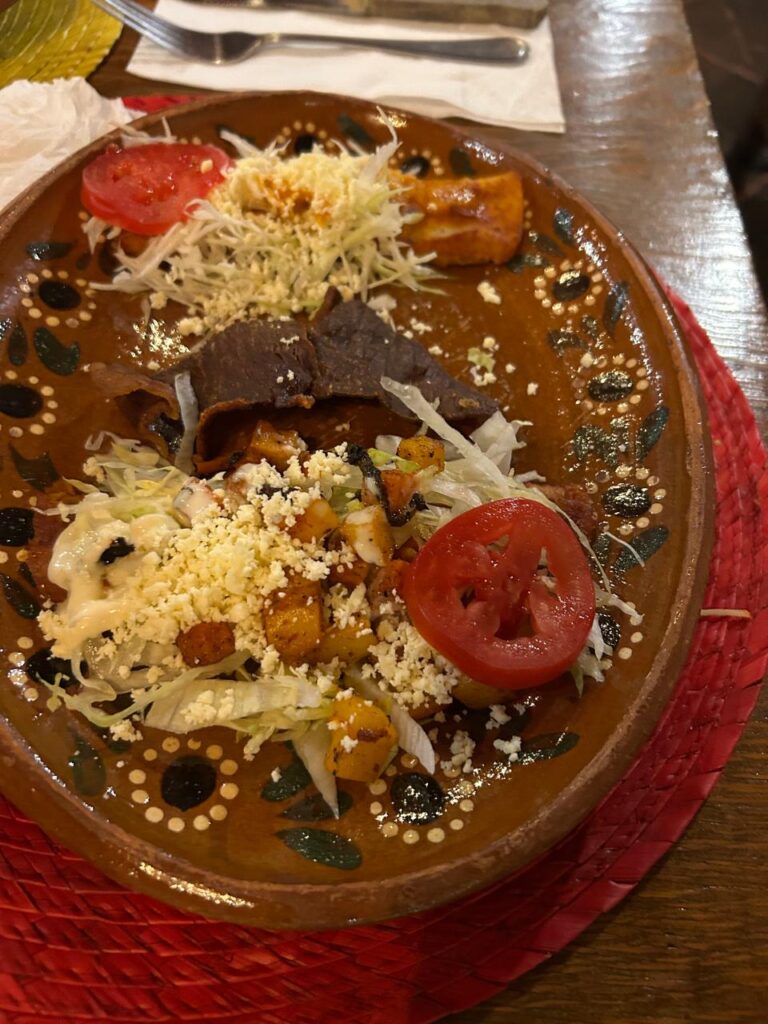 • Tacos dorados combinados (rellenos de carne deshebrada, picadillo, sesos, o pollo).