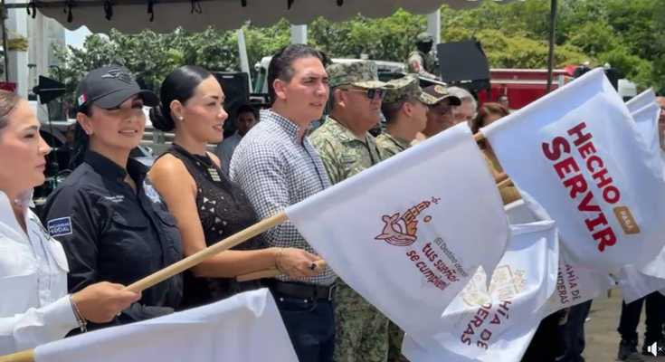 El Presidente Municipal, Héctor Santana, trabajo conjunto entre Protección Civil, Seguridad Pública, Tránsito Municipal, Guardia Nacional, Secretaría de Marina, Ejército Mexicano, autoridades estatales y municipales, dan el arranque de Verano Seguro 2025.